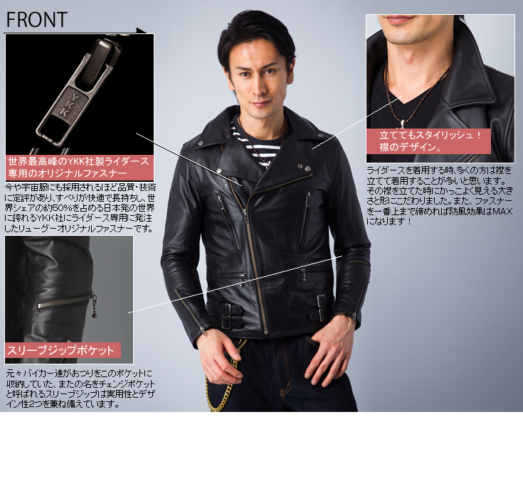 商品カテゴリ一覧 > ライダースジャケット[BIKE] > UKダブルライダースジャケット メンズ 本革 リューグーレザーズ DRY02A ライダースジャケット レザージャケット 革ジャン 皮ジャン ライディングジャケット バイク用 ライダースウェア レーシングスーツ バイクウェア シングルライダース ダブルライダース 本革ジャケット ブラック 黒 アウター