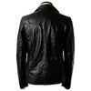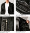 ダブルライダースの襟にはスナップボタンを使用しないことでシンプルかつシックな印象を与えてくれるデザインになっています。また、務歯見せのファスナーがラグジュアリーさを演出してくれるワンポイントになっています。