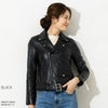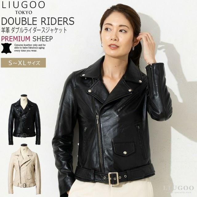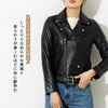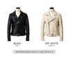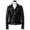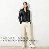 ややコンパクトで身体に程よくフィットするシルエットのダブルライダースジャケット。印象的なウェストベルトとバックル、アクセントとなるシルバーのスナップボタン、前身頃に4ポケット。 ハードさのあるデザインとソフトな羊革が絶妙にマッチする一品。