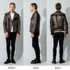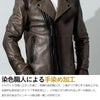 染色職人が1着ずつ手で染め上げる 「手染め加工」 により、 本革の深みとヴィンテージ感をまとった唯一無二のライダースとなっています。 また裏地のカモフラージュ柄や、前面のツイントラックのファスナー仕様など、こだわりの詰まった1着となっています。
