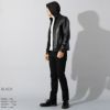 ライダース×パーカーの組み合わせは格好良い、でも袖の中のゴワつきが気になる、、、この商品はそんな問題を解決したフード付ライダースです。 自然な重ね着に見えるよう細部まで調整し、またフードは着脱式なので2WAYで楽しめます。