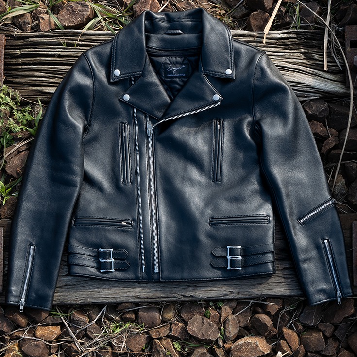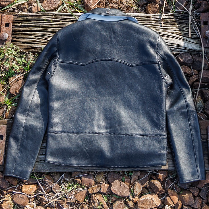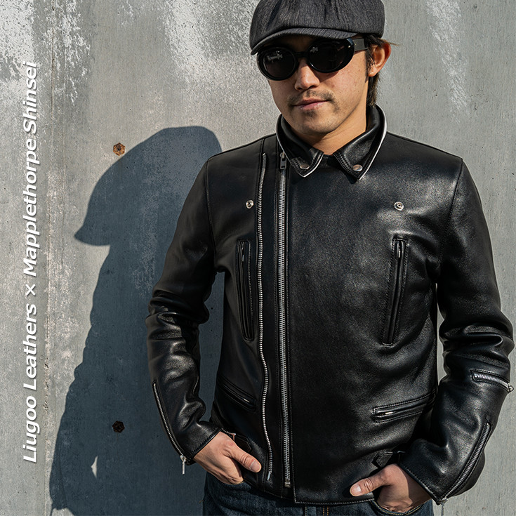 革系YouTuberのトップランナー、メイプルソープ・シンセイ氏プロデュースによる、Liugoo Leathersとのコラボライダース。数多くの革ジャンを知り尽くしたシンセイ氏が思い描く「こんな一着があれば」を形にしたモデルです。ライダース入門編としてはもちろん、玄人にもご満足いただける完成度を備えた一着に仕上がりました。