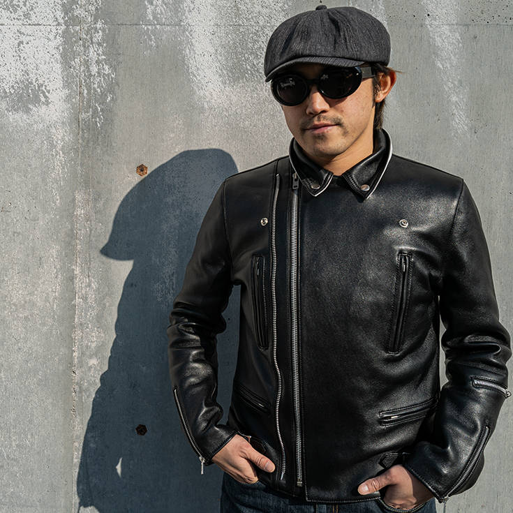 革系YouTuberのトップランナー、メイプルソープ・シンセイ氏プロデュースによる、Liugoo Leathersとのコラボライダース。数多くの革ジャンを知り尽くしたシンセイ氏が思い描く「こんな一着があれば」を形にしたモデルです。ライダース入門編としてはもちろん、玄人にもご満足いただける完成度を備えた一着に仕上がりました。