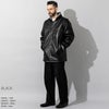 男らしく貫禄を感じさせるレザーと、オリジナルで制作した3本ラインのリブがクールなアクセントになっているレザーファラオコートです。 開閉しやすいスナップボタン仕様や高級感と着心地を両立させたシルク裏地がワンランク上の大人の不良を演出します。
