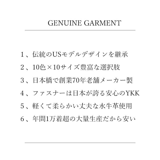 他の画像を見る 選べる10色×10サイズ!高級バッファロー&信頼のYKK使用 Horn Works 本革 USタイプ シングルライダースジャケット メンズ ホーンワークス 4362 レザージャケット 革ジャン 信頼のYKK クーポン利用で1103円OFF 販売価格 ¥ 19,980 税込 カートに入れる お気に入りに登録する 4.86 (7)