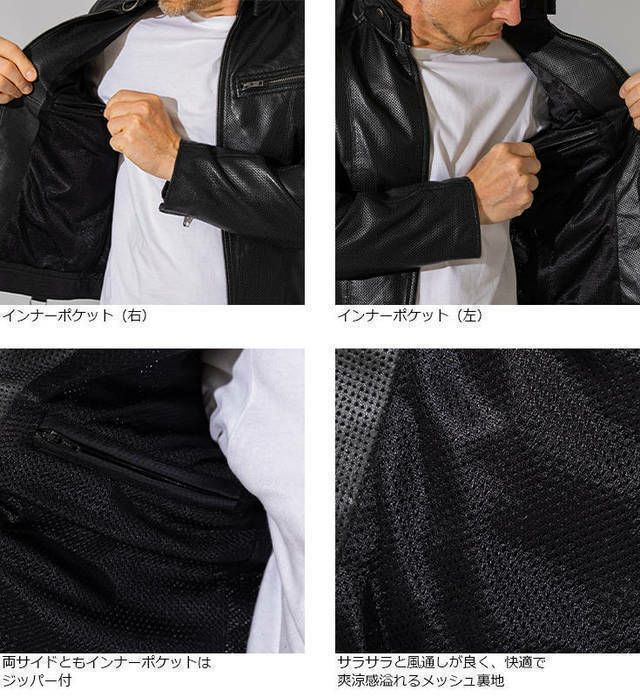他の画像を見る パンチング加工で夏でもサラッと気軽に着られるサマーライダース LIUGOO 本革 メッシュレザー シングルライダースジャケット メンズ リューグー SRS09B クーポン利用で20%OFF 販売価格 ¥ 26,400 税込 カートに入れる お気に入りに登録する (0)
