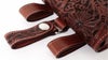 ・肉厚な天然牛革使用・全面に丁寧に彫られたウエスタン調のカービング・固定型と着脱型の2種類のベルトループが装着・普段使いにとても使いやすい大きさ