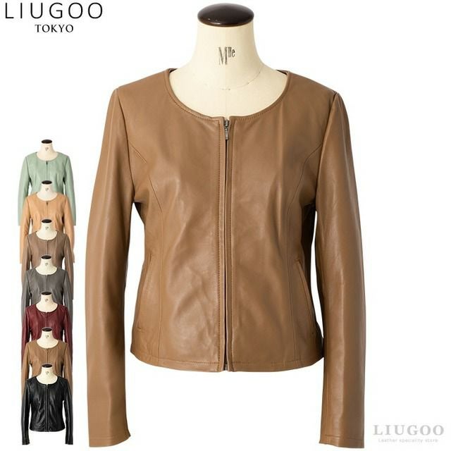 ミニマルデザインが決め手のフェミニンな上品レザージャケット! LIUGOO 本革 ノーカラーシングルジャケット レディース リューグー SRN01LA レザージャケット ライダースジャケット