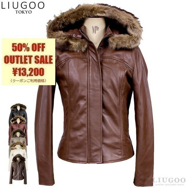 着脱リアルファー&フードで3WAYの着こなしが楽しめる! LIUGOO 本革 フード付ハイネックシングルジャケット レディース リューグー WNG02LB レザージャケット ライダースジャケット