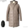 LIUGOO 本革 フード付きロングダウンジャケット レディース リューグー COT04LA レザージャケット ダウンジャケット