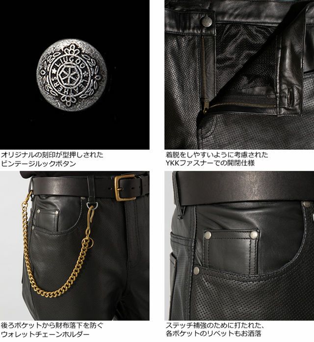 他の画像を見る 想定外の涼しさ!夏仕様の本格レザーパンツで安心ツーリング! Liugoo Leathers 本革 メッシュレザーパンツ メンズ リューグーレザーズ STP04Z 販売価格 ¥ 35,200 税込 カートに入れる お気に入りに登録する 5.00 (1)