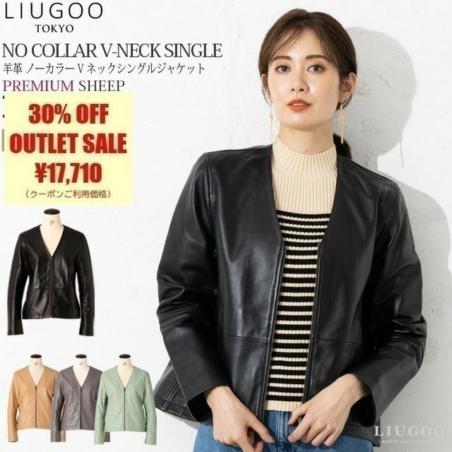 軽くて柔らかシープレザー♪気軽に羽織れる万能レザージャケット LIUGOO 本革 ノーカラーVネックシングルジャケット レディース リューグー SRN03LA 本革レザージャケット 革ジャン ブルゾン