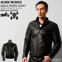 当方、173cm/89kg/胸回り117cmの結構なデブです。 肩・肘・背中・胸にD3Oプロテクターパッドを装着できる薄いジャージを中に着込んでいますので、それを前提に5Lを選びました。(ジャージ部のみで販売していたK○mineの絶版品です。今はプロテクター込みの販売に変わっていますし、=りんかんでも似たのが出ているようですね) 付属品やポケットは使っていません。特に背中のポケットは小さすぎると思います。むしろオプションで「プロテクターを仕込めるポケット付きの中ジャケ」を用意してくれば、御社のレザー全般に使えて良いと思います。 バッファロー革は張りのある表皮が好きです。カウよりも軽く薄くて、水濡れにも強いのでバイクに向いていると思います。豪雨の中を走ったことがありますが、布で押さえて水気を取って干し、乾いたらブラシをかけつつ馬油を薄く塗っておきました。 馴染むとどこに行くにも着たくなります。 -