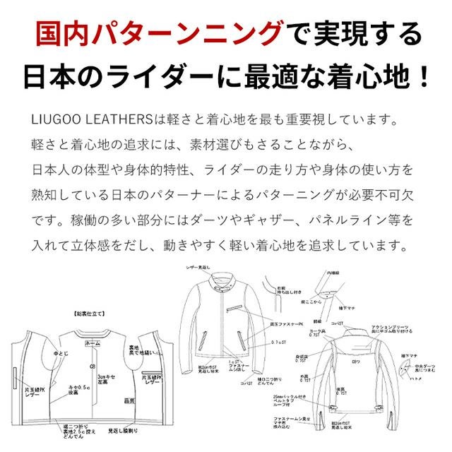 他の画像を見る 着る者に色気と貫禄を与えるダイヤモンドキルティングパッド Liugoo Leathers 本革 パッドダブルライダースジャケット メンズ リューグーレザーズ DRY11A ライダースジャケット レザージャケット クーポン利用で20%OFF 販売価格 ¥ 29,700 税込 カートに入れる お気に入りに登録する 5.00 (1)