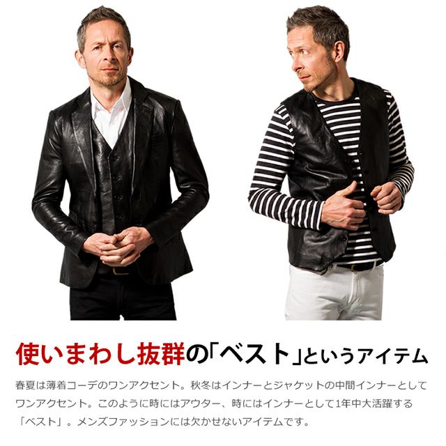 他の画像を見る 羽織るだけでセンスの良さを印象づけるレザーベスト LIUGOO 本革 ドレスベスト メンズ リューグー VST02B レザーベスト レザージャケット ジレ クーポン利用で20%OFF 販売価格 ¥ 29,700 税込 カートに入れる お気に入りに登録する 4.00 (1)