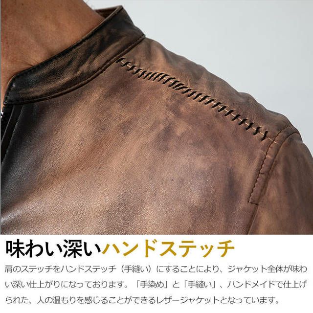 他の画像を見る 職人による手染加工で実現した奥行のあるビンテージな風合い JUVENTUS 本革 手染めシングルライダースジャケット メンズ ユベントス KR002 レザージャケット/ブルゾン/アウター クーポン利用で1103円OFF 販売価格 ¥ 39,600 税込 カートに入れる お気に入りに登録する (0)