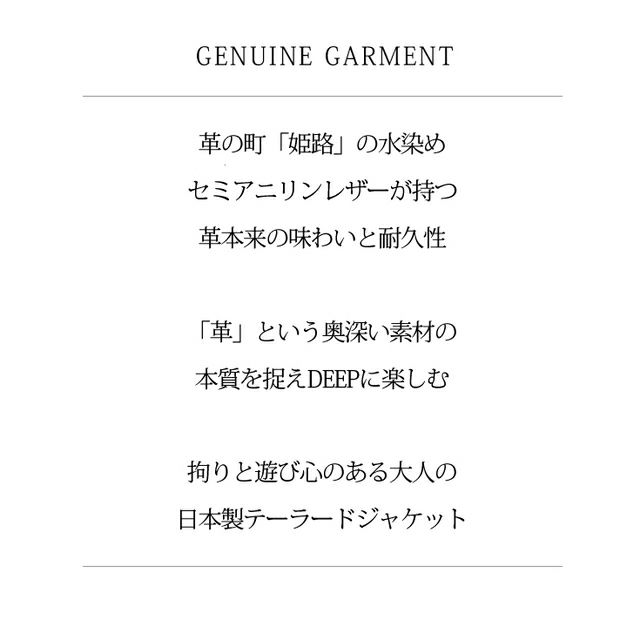 他の画像を見る 伝統の水染め仕上げの日本製テーラード! Horn Works 本革 国産水染めリラックスフィットレザーテーラードジャケット メンズ ホーンワークス 3613 販売価格 ¥ 49,980 税込 カートに入れる お気に入りに登録する 4.73 (40)